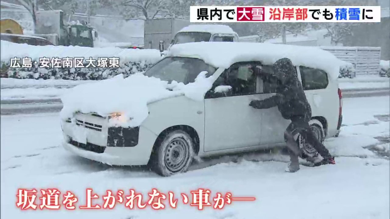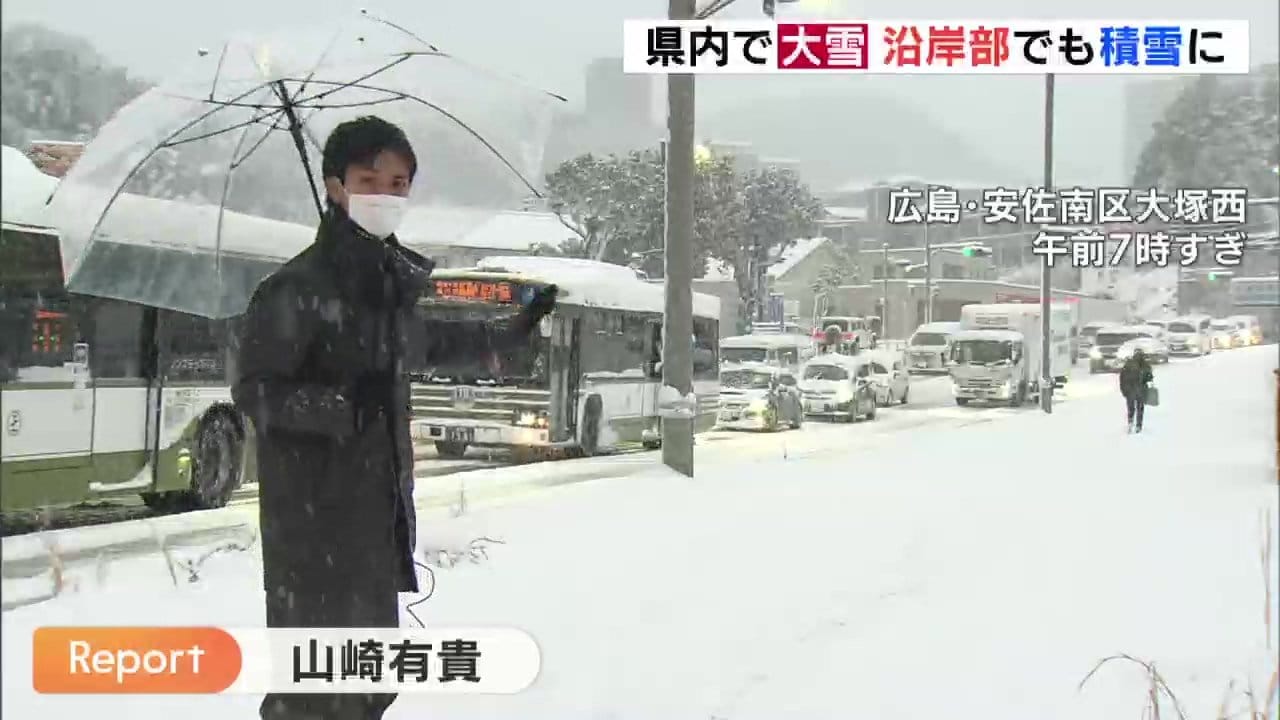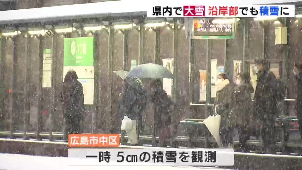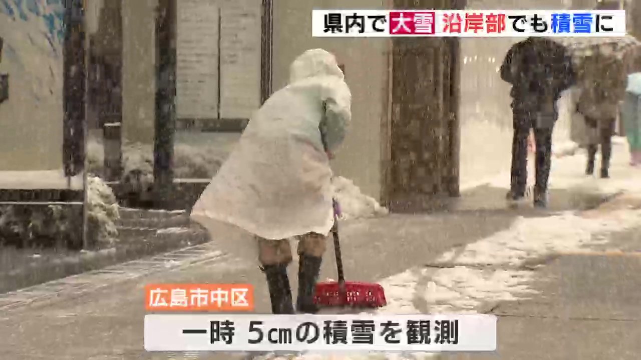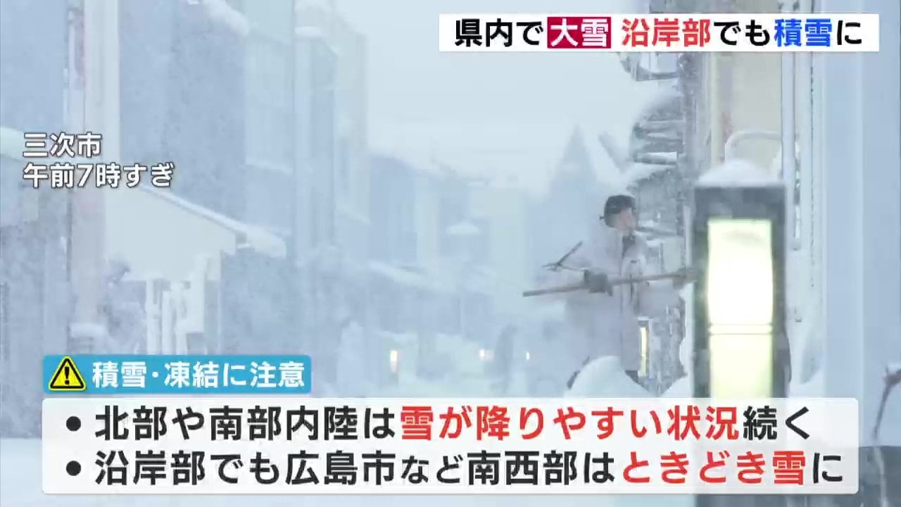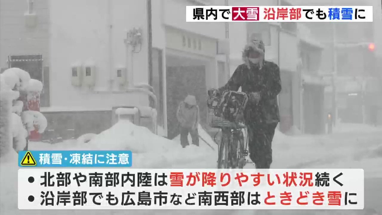 県内には、強い寒気に伴う雪雲が次々と流れ込み大雪となっています。広島市など沿岸部でも雪が積もりました。