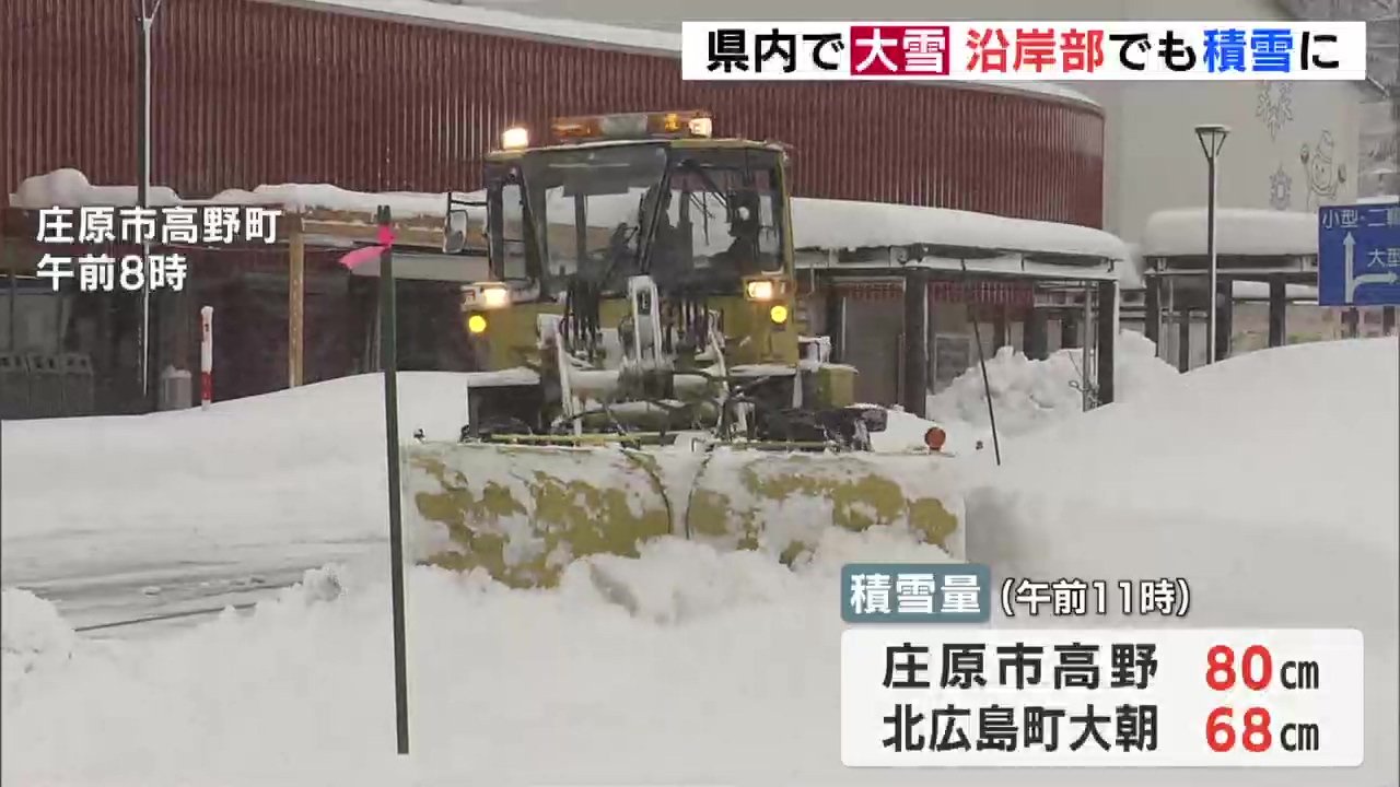 また、北部や南部の内陸ではきのう夕方からまとまった積雪となっていて庄原市高野の積雪は80センチを超えました。