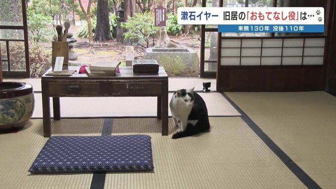 「吾輩は地域猫である」名前はあるけど 自由きまま 夏目漱石旧居をご案ニャい 熊本 熊本放送 2026年2月25日(水) 19:37 国内 館内をご案ニャいします お気に入りの場所は、晴れた日の縁側。 ポカポカのんびり、気持ちがい~い。 そして、もう一つは漱石先生が執筆をしていた場所。 先生も庭を眺めながら文案を練ったり、俳句をひねり出したりしていたんだろうね。