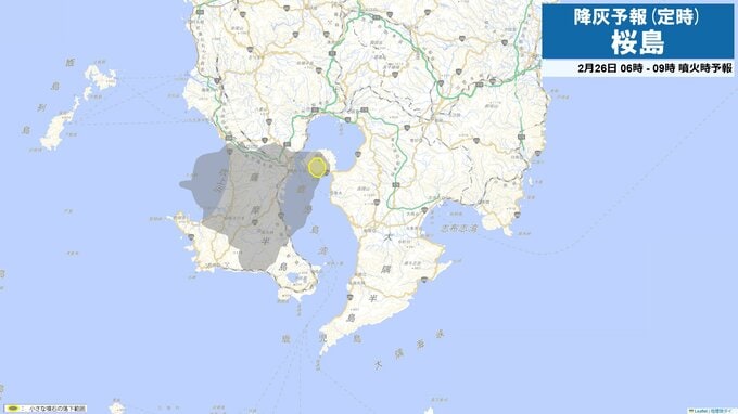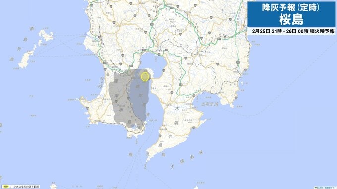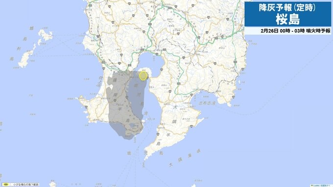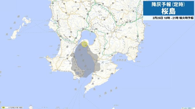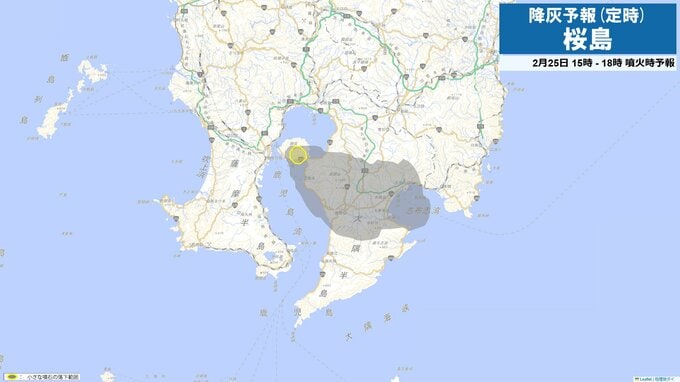 桜島が約1か月ぶりに噴火 噴煙2200m 火山灰は鹿屋市方向へ 南日本放送 2026年2月25日(水) 15:15 国内 降灰予想(定時)25日15時-18時 降灰予想(定時)25日18時-21時 降灰予想(定時)25日21時-26日0時 降灰予想(定時)26日0時-3時 降灰予想(定時)26日3時-6時 降灰予想(定時)26日6時-9時