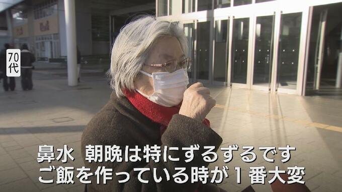 「鼻水、朝晩は特に。ずるずるです。ご飯を作っている時が1番大変。マスクをして、鼻にティッシュを詰めて」