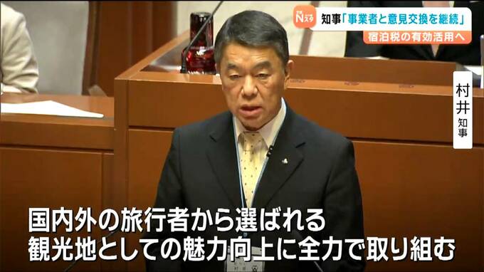 村井知事は25日の県議会代表質問で、宿泊税を活用した施策について宿泊事業者の意見を反映させたと述べました。