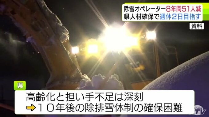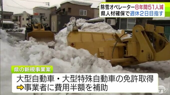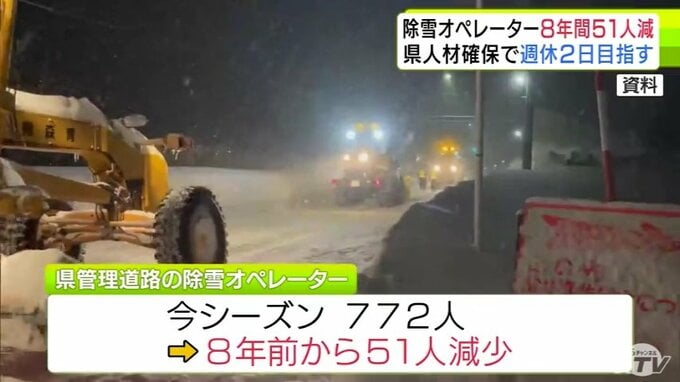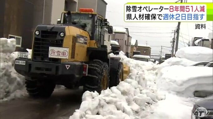 担い手不足深刻 青森県管理の道路の除雪オペレーター 8年間で50人減少 就職先として敬遠される傾向が強く