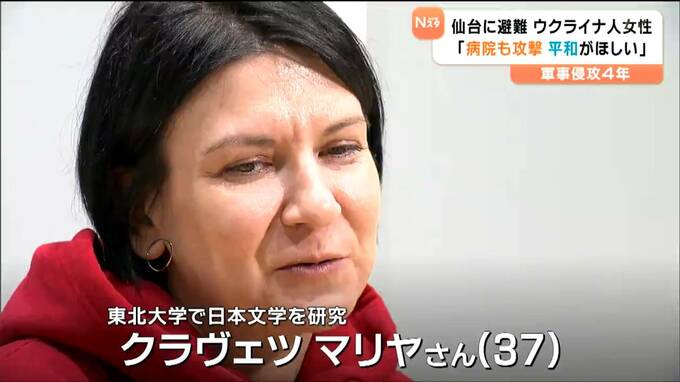 東北大学で日本文学を研究しているクラヴェツ・マリヤさん(37)です。2022年2月、ロシアによるウクライナへの軍事侵攻が始まった後、日本に避難し仙台で生活を続けています。