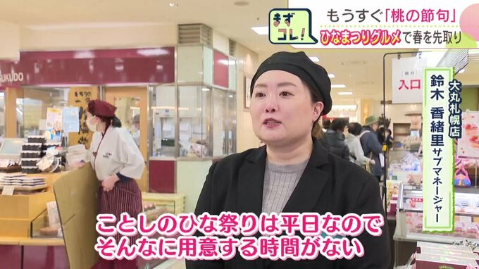 3月の「桃の節句」を前に、大丸札幌店の地下食品売り場では、ひなまつりグルメの販売がスタート。20品を超えるグルメが揃いました。