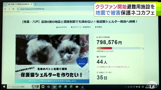 「どうやって猫たちを守っていけばいいのか」災害時に猫が安全に避難できるシェルター設立を…地震で影響受けたネコカフェがクラウドファンディング開始 殺処分される猫も救えるシェルター目指して 八戸市の保護猫カフェ 青森テレビ 2026年2月26日(木) 11:59 国内