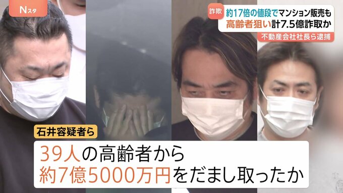 高齢者ばかりを狙って不当な高値で中古マンションを販売していたとして、不動産会社の社長ら9人が逮捕されました。これまでに7億5000万円ほどをだまし取ったとみられています。記者「不動産会社社長の男がうつむき…