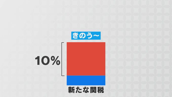 もともと数%だった関税は去年、トランプ「相互関税」で突如15%に上昇しました。しかし今度は、もともとの関税に10%が上乗せされることになるという税率の目まぐるしい変化。