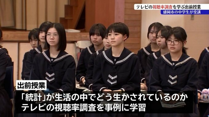 テレビの視聴率がどのように調査されているのかを学ぶ出前授業が盛岡市の中学校で行われました。