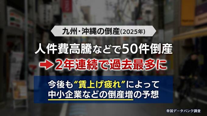 帝国データバンクの調査では九州・沖縄で去年1年間に人件費の高騰などから倒産した企業は過去最多の50件に。