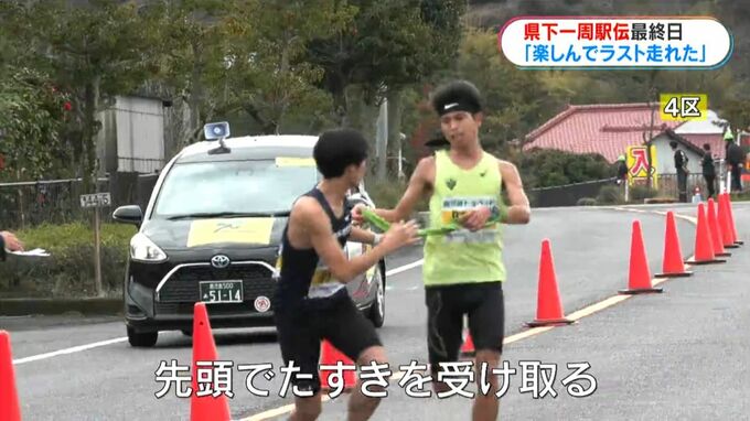 (肝属・中原敬輝選手)「陸上を通していろんな人と出会って、その中で県下一周というのがあった。この区間がラストランなので、最後は楽しんで次の区間の人に笑顔で渡したい」