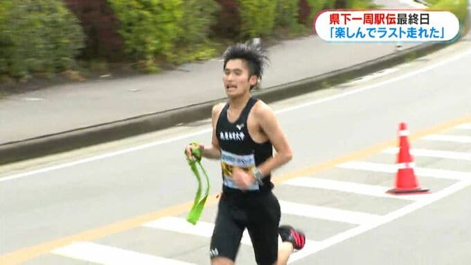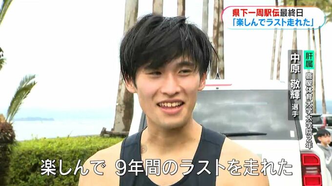 (肝属・中原敬輝選手)「楽しんで9年間のラストを走れた。みんなも見てくれて、感謝しかない。うまくいかない時にどうやって乗り越えるか。県下一周駅伝で培ってこれた。県下一周は人生の財産。これを胸に、社会に出ても頑張っていきたい」