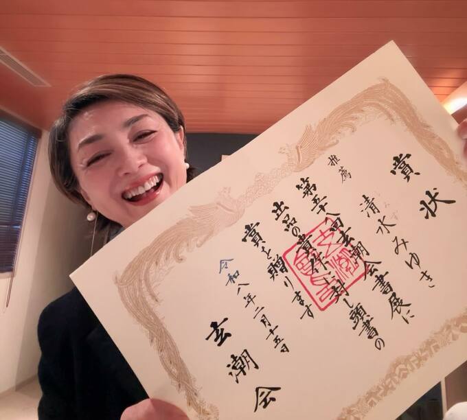 賞状には、「第五十八回玄潮会書展に出品の貴作に対し頭書の賞を贈ります」とし、「推薦 清水みゆき」と香坂さんの本名が記載されています。
