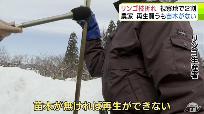 町では2025年の大雪被害を踏まえ、1月から基幹農道を除雪していましたが、枝線の除雪まで手が回らず、農家はリンゴ畑に入ることができませんでした。