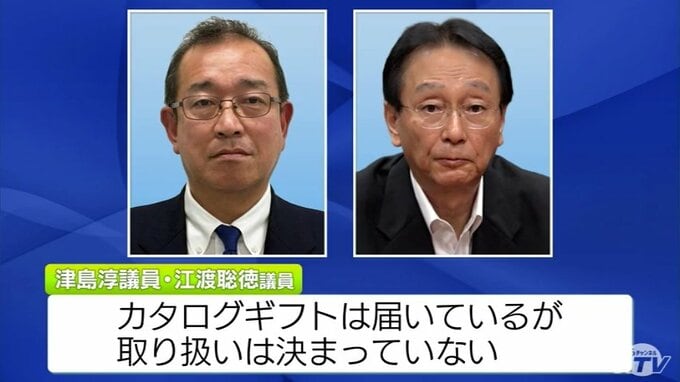 今回の件について、青森県選出の衆議院議員のうち青森1区の津島淳議員と比例代表の江渡聡徳議員は、カタログギフトは届いているが取り扱いは決まっていないとしています。