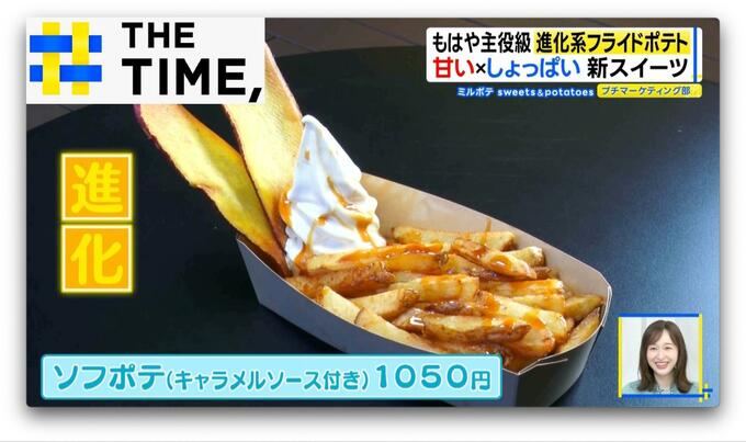 東京ドームシティ(東京・水道橋)にある『ミルポテ sweets&potatoes』名物は、フライドポテトがスイーツとして進化した、その名も「ソフポテ」(キャラメルソース付き・1050円)。