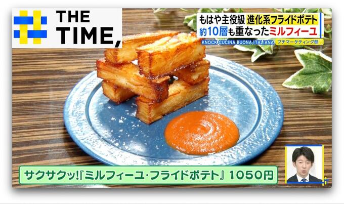 『KNOCK CUCINA BUONA ITALIANA 六本木ヒルズ店』(東京・港区)で楽しめるのは、四角い棒状のポテト6本が“ジェンガ”のように積まれた「サクサクッ!ミルフィーユ・フライドポテト」(1050円)。
