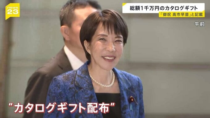 高市総理側が衆議院選挙で当選した自民党の議員315人に配ったカタログギフト。1冊3万円あまりで、のしには「御祝 高市早苗」の文字も…。25日、国会で「法令上、問題ない」と説明をした高市総理。皆さんは、どう…