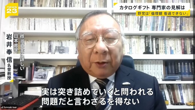 「多少問題だということになるのは、“カタログギフトが高市さんの名義”で、贈られているということ。政党支部名で出すというのがあるべき姿。高市さんのものではないはずだが、個人のお金のように使っている。政党支部は一体何なのかということが、実は突き詰めていくと問われる問題だと言わざるを得ない」