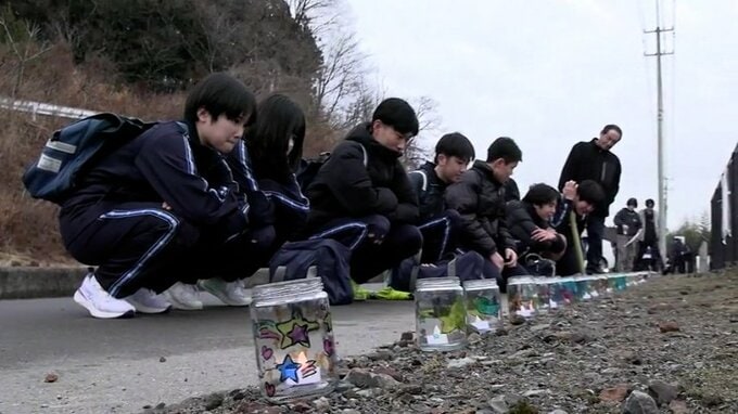 東日本大震災の発生から間もなく15年となるのを前に、陸前高田市の中学校で25日、学校の周辺にキャンドルを灯し震災の記憶を未来につなげようというイベントが行われました。