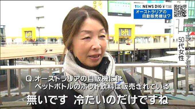 「(Q、オーストラリアの自動販売機にはペットボトルのホット飲料は販売されている?)ないです。冷たいのだけですね。ほとんどがお水と、あとはコーラとか、エナジードリンクぐらいですかね」