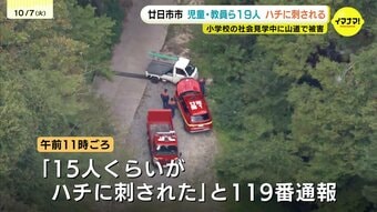 山登り中の児童15人がハチに刺される 大人4人含む計19人が刺され搬送 登山客が増える秋は被害増 山歩き時には足元だけでなく周囲にも注意を向けて 広島県廿日市市
