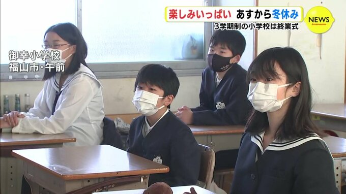 広島県内にある大半の小中学校は、あす24日から冬休みです。3学期制の学校では、終業式がありました。全校児童934人と福山市内で最も児童数が多い御幸小学校では、感染防止対策のため、それぞれの教室で事前に撮影…