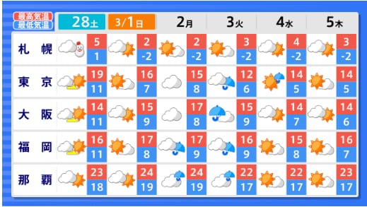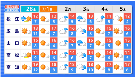 【2週間気温予報】東・西日本の向こう2週間の気温は高い予報 向こう1週間程度はかなり高い日もある見込み 農作物の管理などに注意 全国の天気を画像で 気象庁 テレビユー山形 2026年2月26日(木) 11:37 国内 ■全国の天気を地方ごとに(画像) 画像はTBS NEWS DIG Powered by JNNより 画像ありの記事を最初から https://newsdig.tbs.co.jp/articles/-/2492028?display=1