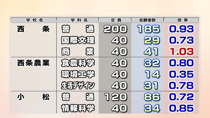 愛媛県立高校入試2026年 一般入試・変更後の志願倍率 松山東0.97倍 松山南1.08倍 松山北1.18倍 今治西0.95倍 全体は0.89倍【全高校・全学科掲載】|TBS NEWS DIG