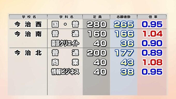 愛媛県立高校入試2026年 一般入試・変更後の志願倍率 松山東0.97倍 松山南1.08倍 松山北1.18倍 今治西0.95倍 全体は0.89倍【全高校・全学科掲載】|TBS NEWS DIG