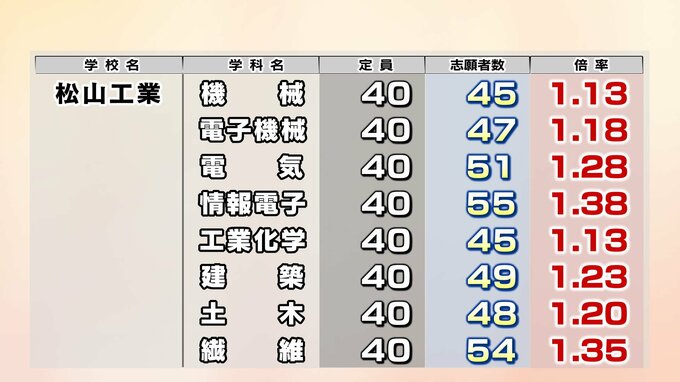 愛媛県立高校入試2026年 一般入試・変更後の志願倍率 松山東0.97倍 松山南1.08倍 松山北1.18倍 今治西0.95倍 全体は0.89倍【全高校・全学科掲載】 あいテレビ 2026年2月26日(木) 11:49 国内