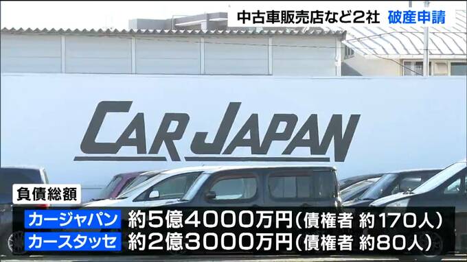 負債総額は、カージャパンが債権者約170人に対し約5億4000万円、カースタッセが債権者約80人に対し約2億3000万円で、あわせて約7億7000万円です。