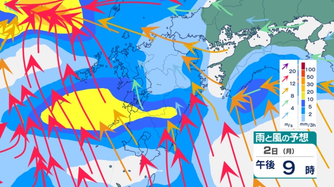 3月2日(月)〜3日(火):週明けは再び低気圧が発達しながら接近し、九州でもまとまった雨となる可能性があります。