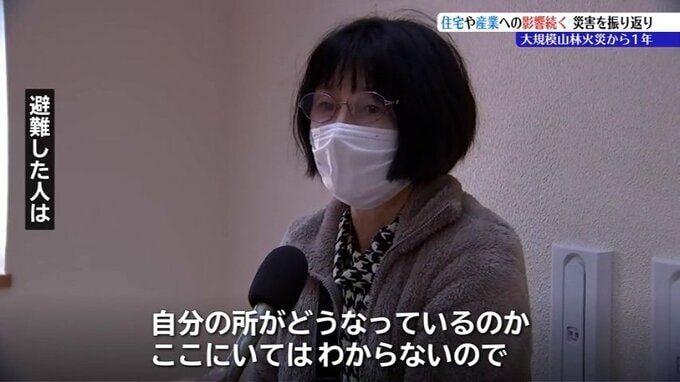 延焼範囲の短時間での拡大に伴い、綾里地区など最大で1896世帯4596人に避難指示が出され、住民は自分の住まいがどうなっているかさえも分からない、避難所での不安な日々を余儀なくされました。