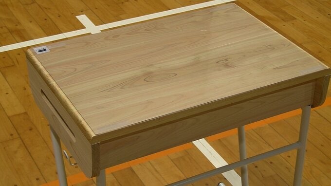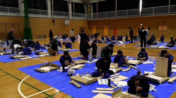 自作した学習机にはこの後、足が取り付られ中学校に送られるということです。