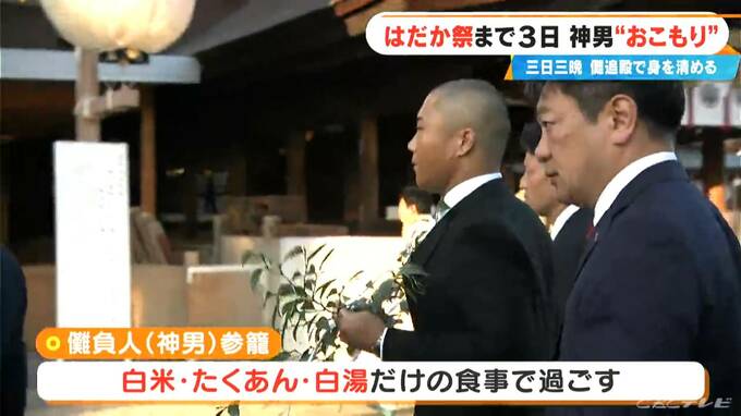 白米・たくあん・さゆだけの食事で三日三晩過ごす「おこもり」。神社にある儺追殿に、きょうからこもります。