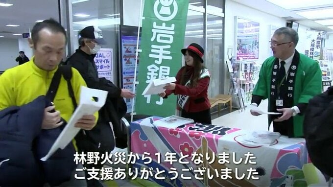 大船渡市の大規模山林火災の発生から1年を迎えた26日、いわて花巻空港で復興に取り組む大船渡の歩みを伝え、支援を呼びかけるイベントが行われました。