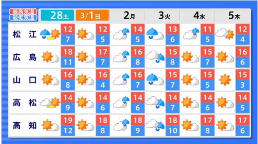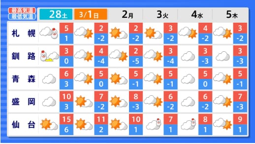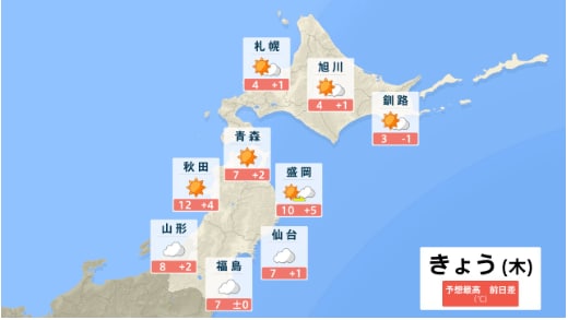東北地方の向こう3か月(3月~5月)の天候の見通しは 平均気温・降水量は? 月別では? 今後の東北・全国の天気を画像で 気象庁 テレビユー山形 2026年2月26日(木) 15:17 国内 ■全国の天気を地方ごとに(画像) 画像はTBS NEWS DIG Powered by JNNより 画像ありの記事を最初から https://newsdig.tbs.co.jp/articles/-/2492959?display=1