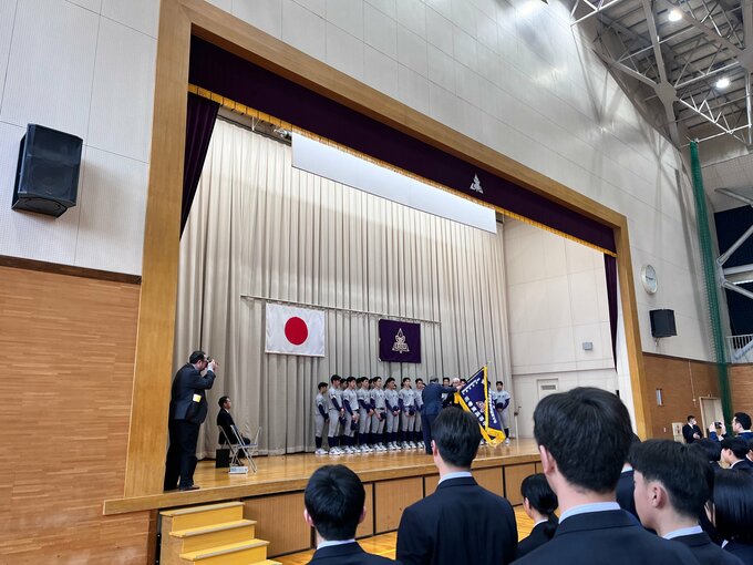 式で小田島校長は「先輩の築いた素晴らしい成績や伝統を乗り越え県民の期待に応えてほしい」と話し、選手たちを激励しました。