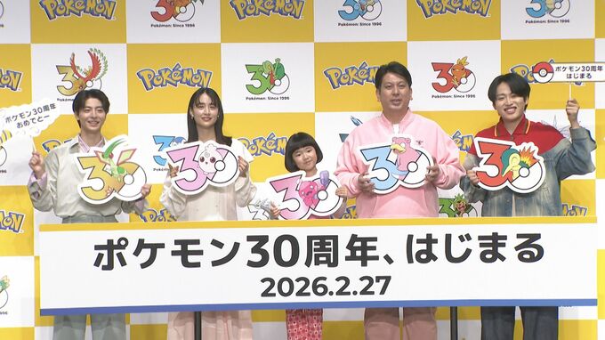 今月27日に『ポケットモンスター 赤・緑』が発売されてから30周年を迎えることを記念し 「ポケモン30周年、はじまる」キックオフ発表会が開催。ゲストに俳優の高杉真宙さん、山本美月さん、永尾柚乃さん、お笑いコンビ・レインボー(ジャンボたかおさん、池田直人さん)が登場しました。