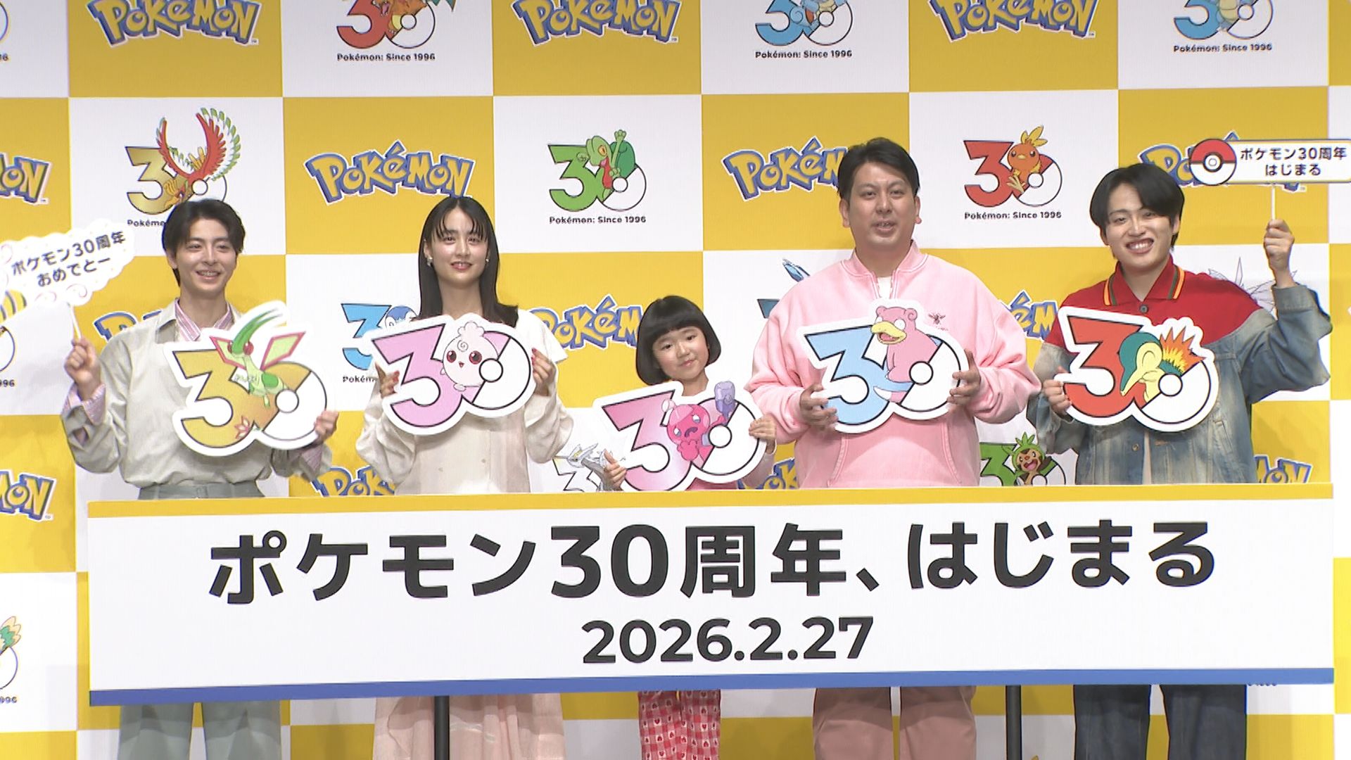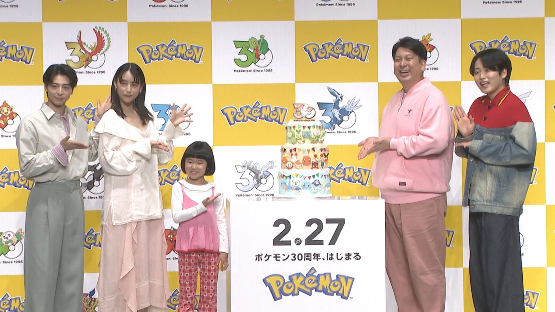 今月27日に『ポケットモンスター 赤・緑』が発売されてから30周年を迎えることを記念し、 「ポケモン30周年、はじまる」キックオフ発表会が開催。ゲストに俳優の高杉真宙さん、山本美月さん、永尾柚乃さん、お笑いコンビ・レインボー(ジャンボたかおさん、池田直人さん)が登場しました。