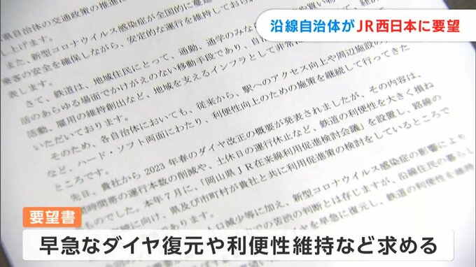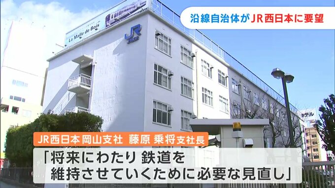 JR西日本の来年春のダイヤ改正では、岡山県内を走る3つの在来線で運行本数の削減などが予定されています。ダイヤの早急な復元などを求め、沿線の自治体や県がJR西日本岡山支社に要望書を提出しました。