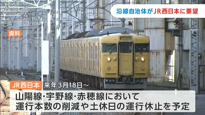 JR西日本は来年3月から山陽線、宇野線、赤穂線の3路線で運行本数の削減や土日祝日の運行休止などを予定しています。