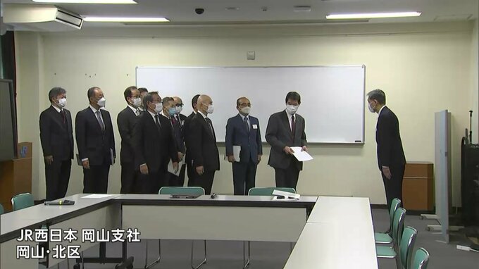 JR西日本の藤原支社長に春のダイヤ改正に対する要望書を連名で提出したのは、岡山県と岡山市や倉敷市など県内11の市と町です。