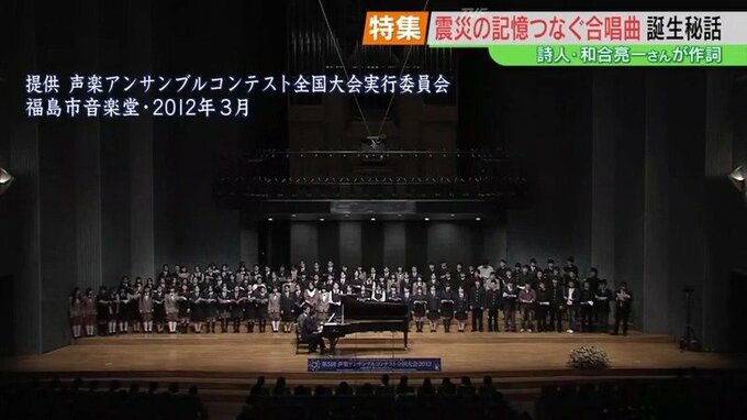 この歌は、毎年3月に福島市で開かれている合唱の全国大会「声楽アンサンブルコンテスト」で、震災翌年から出場チーム全員が参加する全体合唱曲として歌い継がれています。