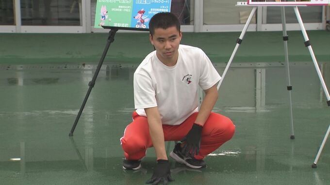 鳥取市の陸上競技場に現れたのは、米子市在住で100メートル四足走行のギネス世界記録保持者、Ryuseiさん。
