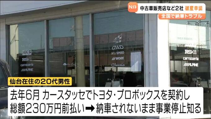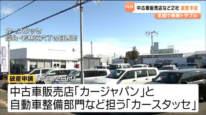 宮城県内の中古車販売店などが総額約7億7000万円の負債を抱え仙台地方裁判所に破産を申請しました。この中古車販売店を巡っては、代金を支払ったのにも関わらず納車されないトラブルが全国で相次いでいます。
