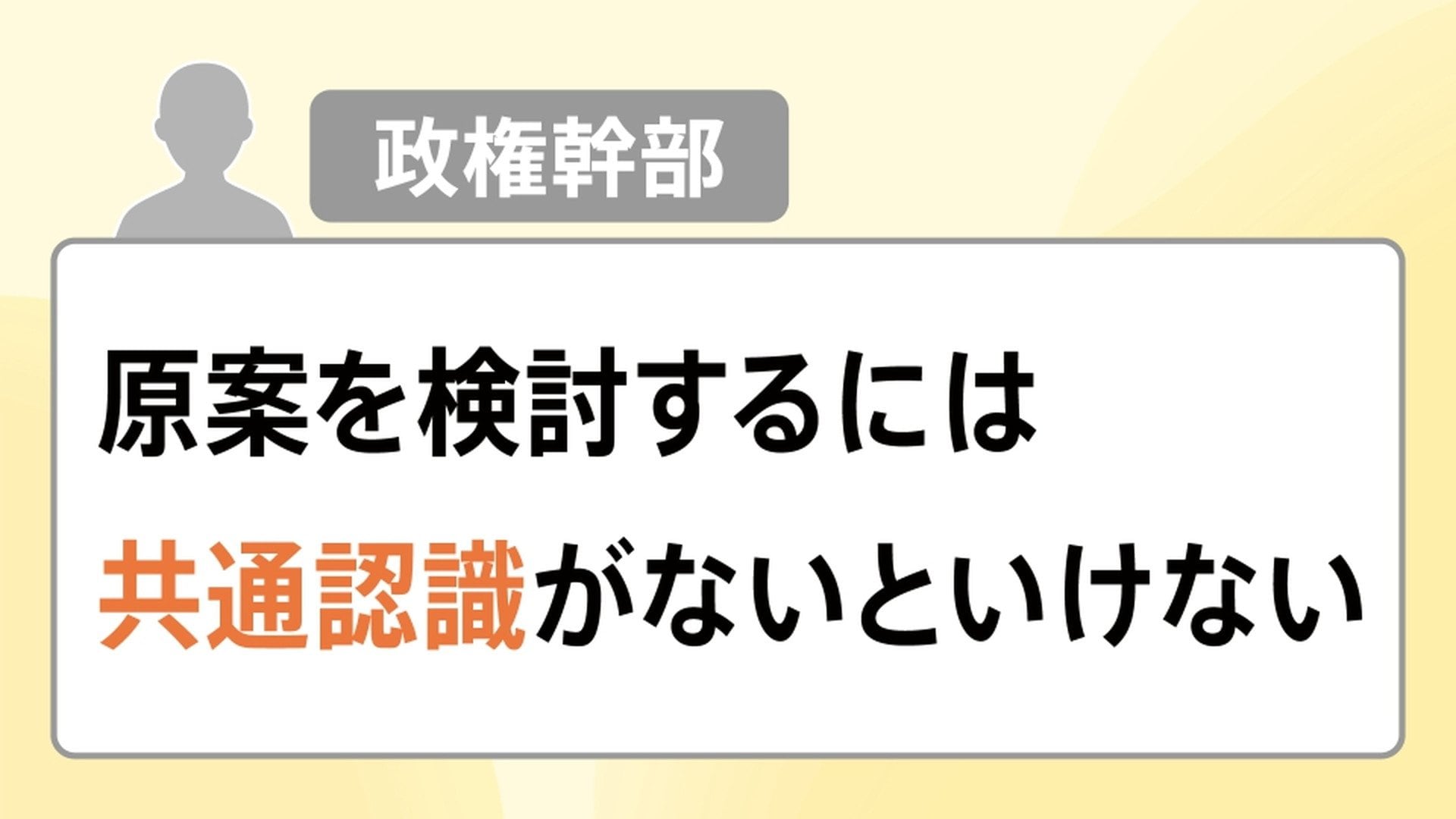一方、政権側の思惑として、ある政権幹部は「原案を検討するには共通認識がないといけない」と話しています。これはどういうことかというと、国民会議は結論を出す場ではなく、原案を作る場所だということです。