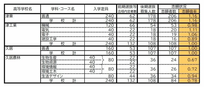 三重県立高校入試2026 後期選抜の志願倍率・出願状況〈普通科〉松阪0.81倍 桑名1.07倍…