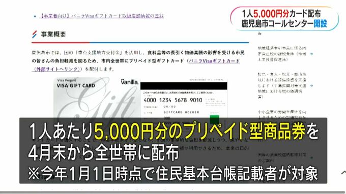 国の「重点支援地方交付金」を活用し市は1人あたり5000円分のプリペイド型商品券を4月末から全世帯に配る方針です。(※今年1月1日時点で住民基本台帳記載者が対象)